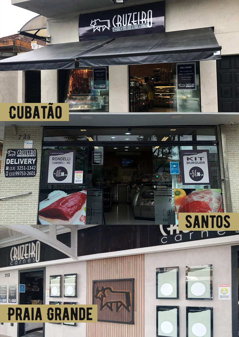 No dia 29/12/1989, nascia em Cubatão a Cruzeiro Carnes. Em 2001, o sucesso fez com que fosse aberta uma filial na principal cidade da Baixada Santista: Santos. Mais recentemente, para melhor atender seus clientes, a Cruzeiro Carnes expandiu sua atuação para a cidade de Praia Grande. Desde então, é sem dúvida um dos principais açougues da região. Carnes bovinas, suínas, laticínios, frios, carnes nobres e exóticas, além de uma vasta gama de produtos de mercearia. Tudo isso, com as melhores marcas do mercado em um ambiente higiênico e confortável.